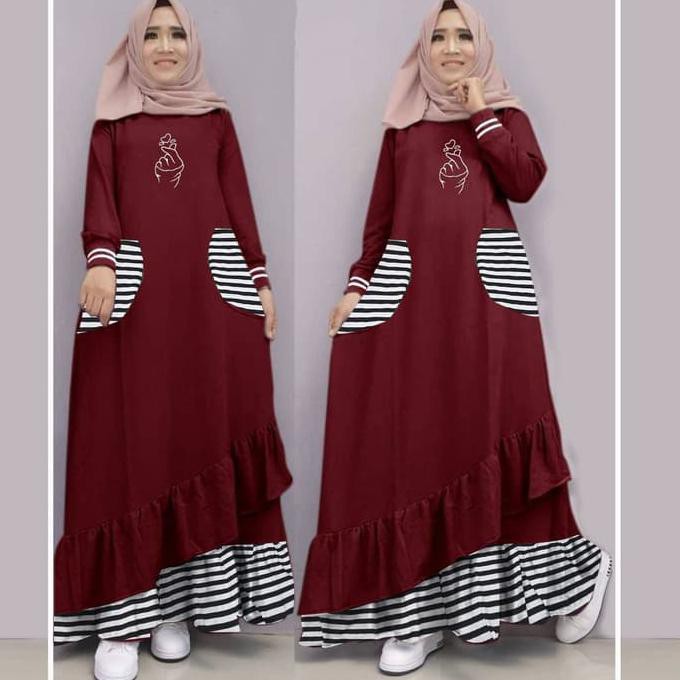 Maxy Parisora Maron Gamis 0100 Skm Baju Gamis Wanita . Sumber Gambar : shopee.co.id